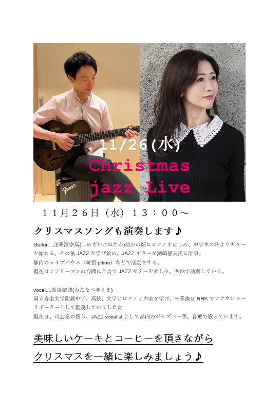 カフェカルム 11月 ジャズコンサート