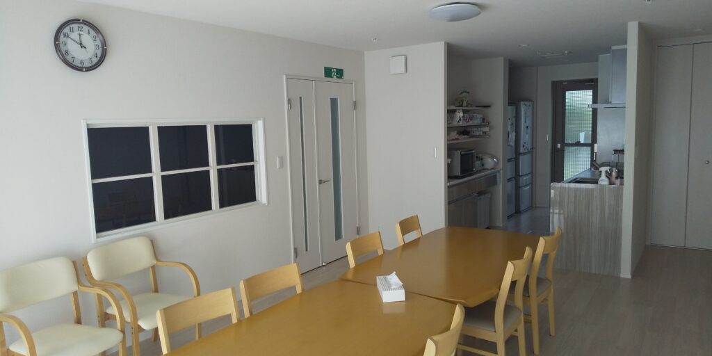 令和7年9月1日新規開所予定のグループホームです。定員は10名で今のところ男性、女性どちらのグループホームになるかは未定です。新規に入居される方は、法人でシングルベッド、マット、エアコン、照明器具、テレビ、テレビ台、カーテン、wi-fiは準備いたします。グループホームのすぐ前にバス停があります。建物は鉄筋造でしっかりしています。また、部屋と部屋の間の壁は通常より高い防音性を持つようにしています。