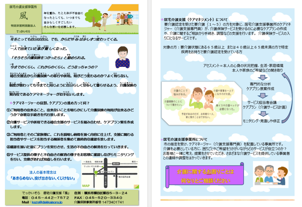 それと当法人が高齢者の入所施設や通所施設を運営していないため、より公正な立場で利用者ニーズに沿った事業所の選択が可能であるという事です。